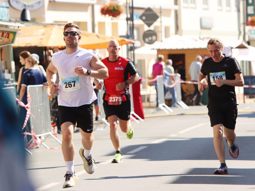 Positionsmäßig passierte auch nichts mehr. Vor mir war ganz viel Luft und von hinten kam auch keiner. Aber halt! Auf den letzten 500 m hörte ich Schritte hinter mir. Und die hörten sich ziemlich schnell an! Und dann überholte er mich. Er sagte noch, dass ich die ganze Zeit vor ihm gelaufen wäre. Das war sicherlich ein schönes Gefühl für ihn, mich doch noch zu kriegen. Das hätte ich mit Gerald auch gerne gehabt… Ich versuchte noch, an ihm dranzubleiben. Das gelang mir auch ansatzweise und so steigerte sich meine Durchschnittspace auf den letzten 500 m auf 4:24 min/km. Im Schlussspurt kam ich sogar noch auf einen Wert von etwas über 4:00 min/km.